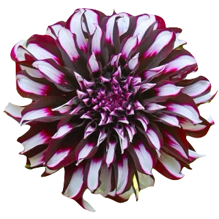 'Tartan' is a dinnerplate dahlia with huge burgundy-and-white blooms.
